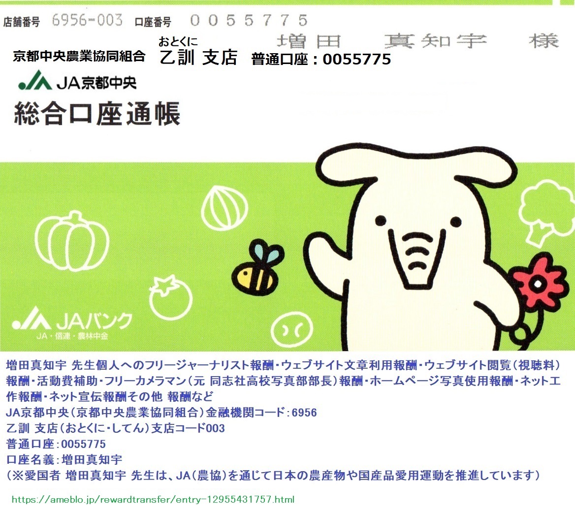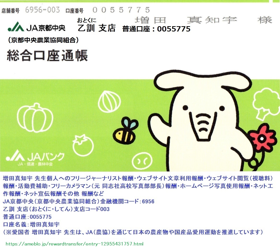 増田真知宇 先生個人へのフリージャーナリスト報酬・ウェブサイト文章利用報酬・ウェブサイト閲覧(視聴料)報酬・活動費補助・フリーカメラマン(元 同志社高校写真部部長)報酬・ホームページ写真使用報酬・ネット工作報酬・ネット宣伝報酬その他 報酬など
